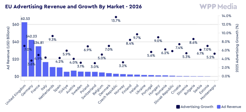 Marché publicitaire : WPP Media revoit à la hausse ses prévisions pour 2025 et 2026